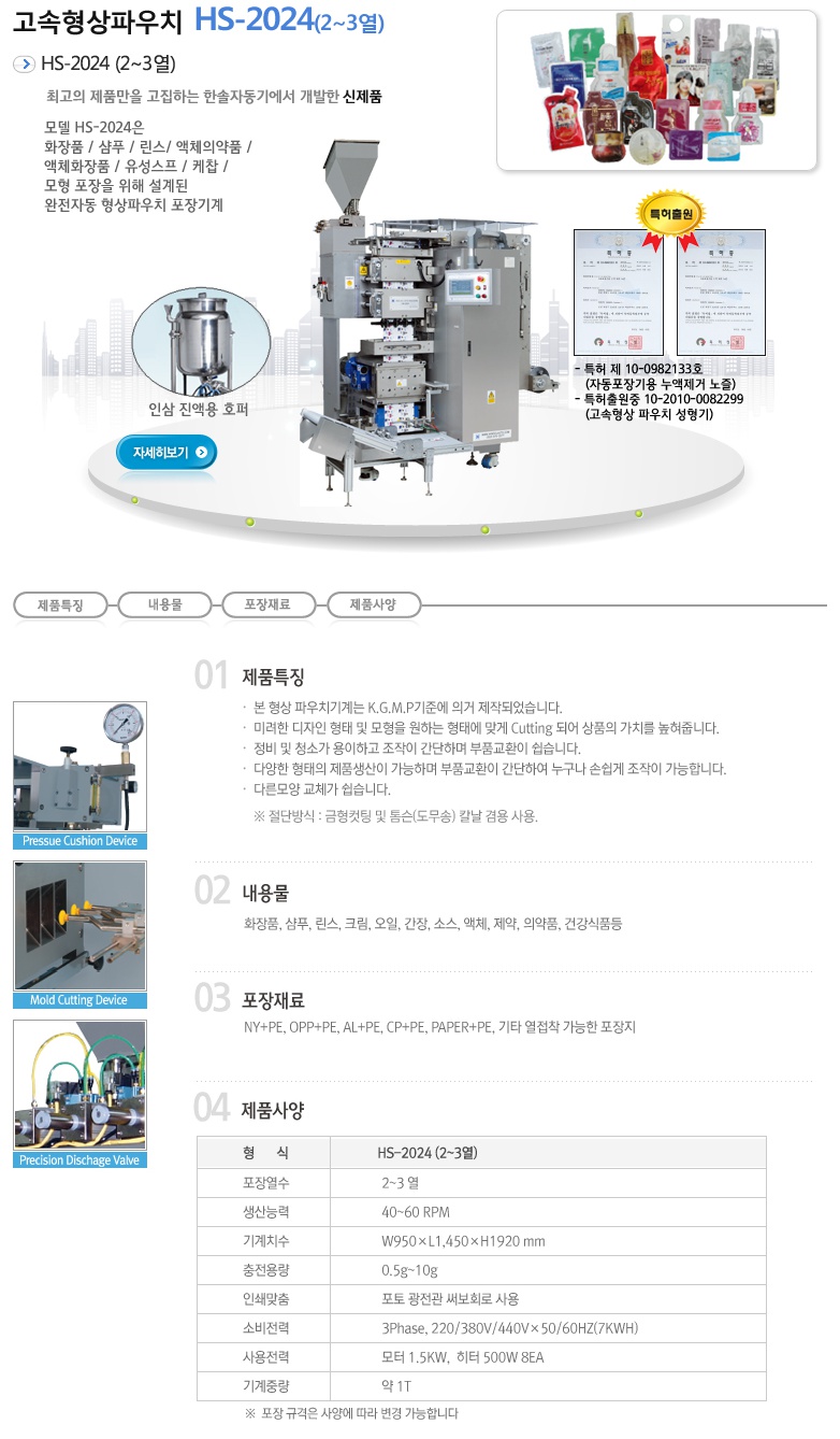 - 본 형상 파우치기계는 K.G.M기준에 의거 제작되었습니다.