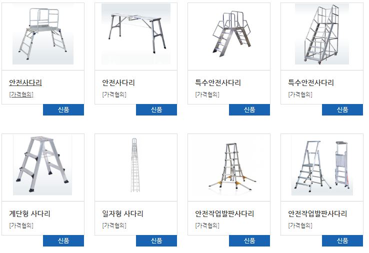 대표적인 제품은 크레인 흔들림 제어장치, 안전사다리, 개인보호장비, 국소배기장치, 산업용 청소기, 운반기구, 작업대 등 다양한 산업용품을 판매하고 있는 업체 입니다.