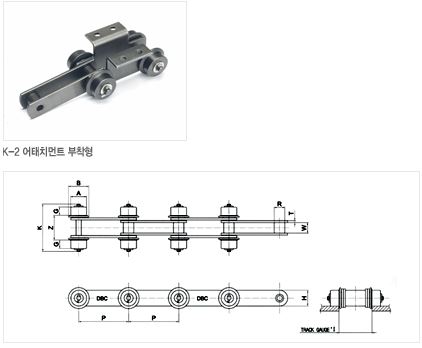 * 표준형 컨베이어 체인의 S 로울러를 기본으로하여