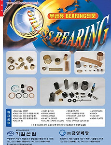 기일산업 주소: 부산광역시 사상구 괘법동 578 산업용품 유통상가 5동 129호 전화: 051-319-1605~6 (주)금영메탈 주소: 부산광역시 강서구 대저2동 2049-1번지 전화: 051-832-5271 주요취급: 베어링, BEARING, OILLESS BEARING, DRY BEARING, DRX BEARING, BI-METAL, 메타로프라스트, BEAREE 미끄럼 축수의 표준제품, PBT-40 베어링 테이프, PRECISION LOCK NUT, 접시스프링, DISC SPRING, BALL RETAINERS 홈페이지 바로가기: www.oillesskorea.net