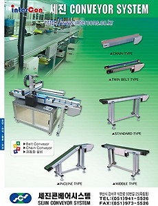 세일산업기계 주소: 부산광역시 사상구 학장동 257-26번지 전화: 051-327-2877, 315-7244 주요취급: ROTARY CONVEYOR, BELT CONVEYOR, TROLLEY CONVEYOR, BUCKET CONVEYOR, SCREW CONVEYOR, CHAIN CONVEYOR, MESH WIRE CONVEYOR, SLAT CONVEYOR, 슈퍼 ROLL, 슈퍼렉스 CONVEYOR, ROLLER제작 홈페이지 바로가기: www.sicm.co.kr
