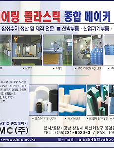대명PMC(주) 주소 : 경남 창원시 마산회원구 봉암동 472-25 전화 : 055-221-6020 취급품목 : 절삭가공 및 산업기계 제작, Sheet, Rod, PVC 파이프 및 앵글, PP찬넬, 용접봉, 각종 압출 및 사출전문, 엔지니어링 플라스틱, 각종 산제조 및 물탱크, 약품탱크, 부식기 제작 홈페이지 바로가기 : http://www.dmpmc.kr/