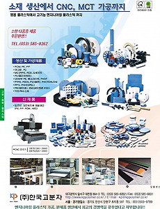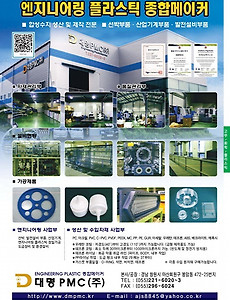 해당자료는 산업포털 여기에가 제공하는 자료입니다. 산업포털여기에는 다양한 산업체의 정보를 제공하고 있으며, 보다 나은 서비스를 위해 항상 노력하고 있습니다. ■ 업 체 명 : 대명PMC(주) ■ 전화번호 : 055-221-6020~3 ■ 주 소 : 경남 창원시 마산회원구 봉암동 472-25번지 ■ 홈페이지 : www.dmpmc.kr ■ 취급품목 : 절삭가공 및 산업기계 제작, Sheet, Rod, PVC 파이프 및 앵글, PP찬넬, 용접봉, 각종 압출 및 사출전문, 엔지니어링 플라스틱, 각종 산제조 및 물탱크, 약품탱크, 부식기 제작 더많은 광고지면을 확인하실려면 아래의 길잡이 바로보기를 클릭하세요 2013 엔지니어링 길잡이 바로보기